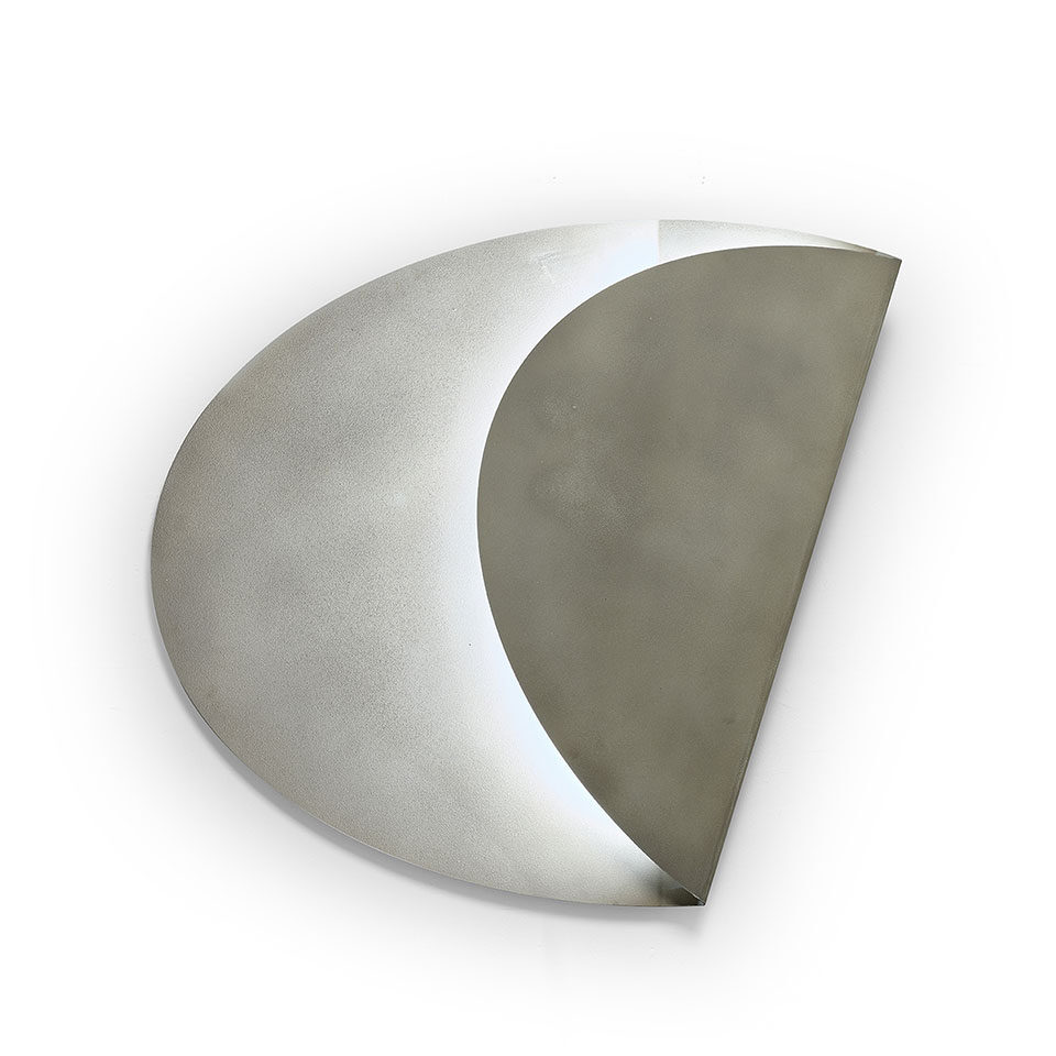 Plier is a metal wall lamp characterized by folded semicircular shapes that create an intriguing and refined play of light and shadow. Each piece stands out for the harmony between the rigidity of the metal and the fluidity of the curves. Available in delabrè finish in 3 colors gold, peltro, oyster.
