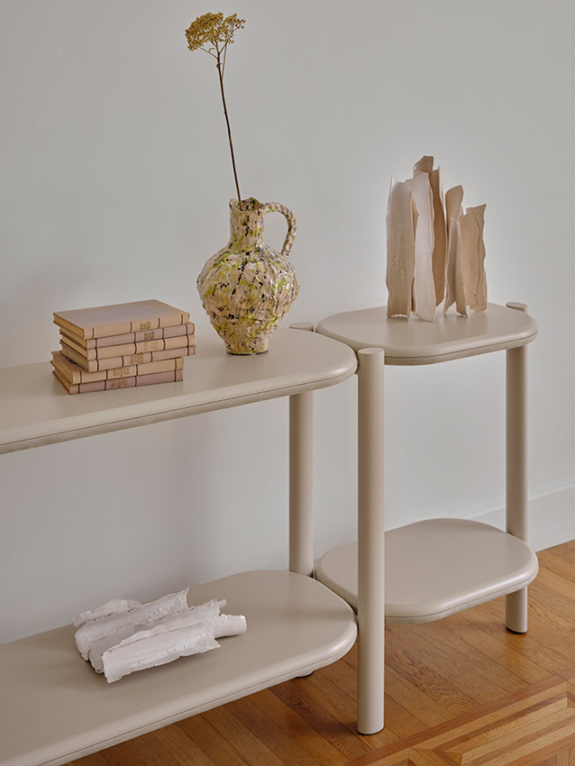 Like a staircase leading to infinity, the Anam bookcase develops gently, finding balance between lightness and solidity. Every book and every object find a space of respect and poetry within this structure, and offers itself as a guardian of our chosen memories. The materials themselves tell a story: the rigid and decisive upper part evokes the stability of things that last over time, the lower part, upholstered in fabric, whispers an unexpected kindness. Its presence does not dominate the space but rather enriches it, suggesting a dialogue between what we see and what we imagine.