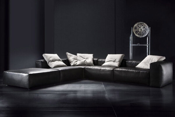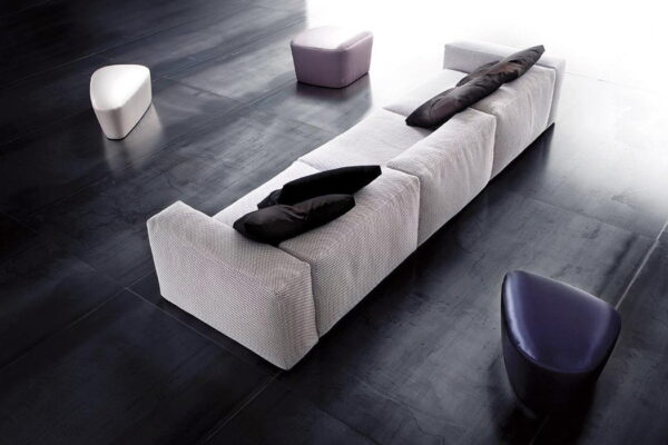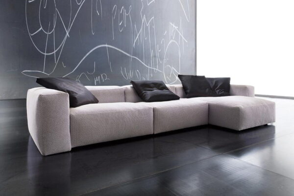 ASPETTAMI Modular sofa, soft and enveloping. Metal base and wooden frame, springing system with elastic webbing padded with non-deformable polyurethane and filled with natural goose feather.