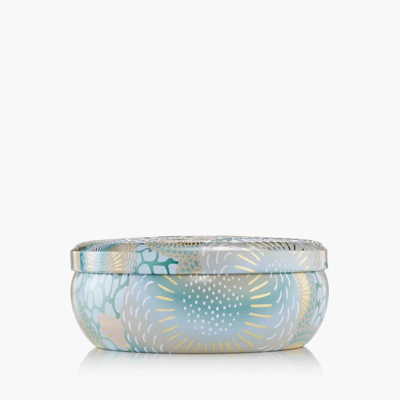 Voluspa’s unique coconut wax blend is housed in a 12 oz. metal vessel adorned in Japonica pattern and topped with a matching lid that keeps the candle dust-free when not in use.