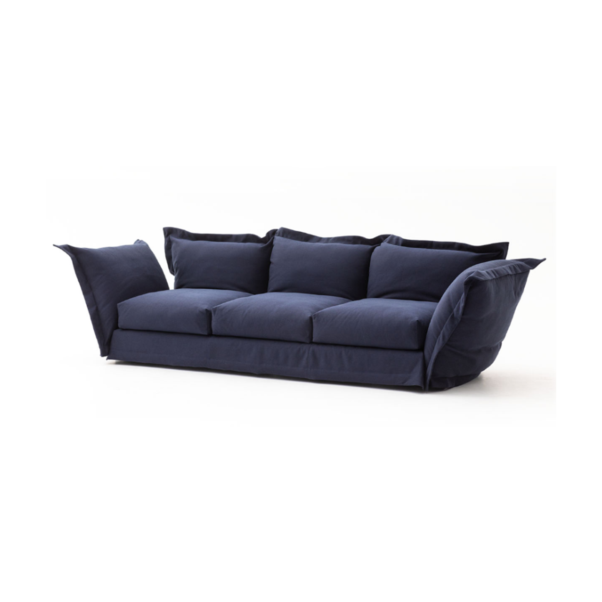 With new proportions, Cloudscape continues to play with Diesel Living with Moroso’s theme of cloud-like softness and relaxation. This sofa’s character is enlivened by extra-large, connected pillows with distinctive flaps, which are a collection signature. The pillows themselves comprise the structure; there are no extra add-ons, which furthers this idea of pure comfort.