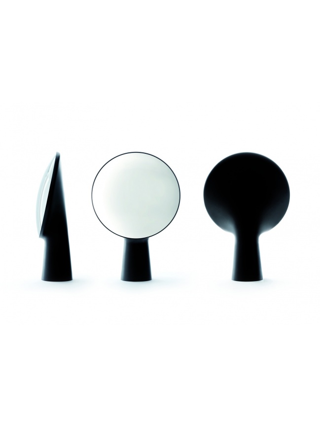 Standing mirror. Cyclope gets its name from the convex mirrors formerly called « witch’s eye ». These mirrors give the strange and intriguing feeling that someone else is watching us from the other side. This convex mirror sits on a conical base made out of clay like a statue observing it’s environment.