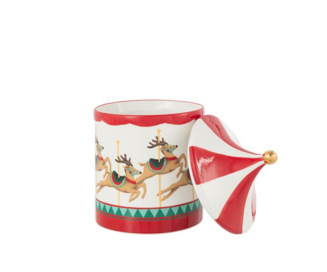 Add a spin of magic to your holidays! Our multicolored carousel jar brings nostalgic charm to every festive corner.