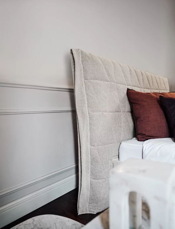 The quilted headboard available in two dimensions is the distinctive feature of the bed Gem. The collection consists of upholstered knock-down beds with removable covers. Bed cover with pleated corners and overlock-stitching.