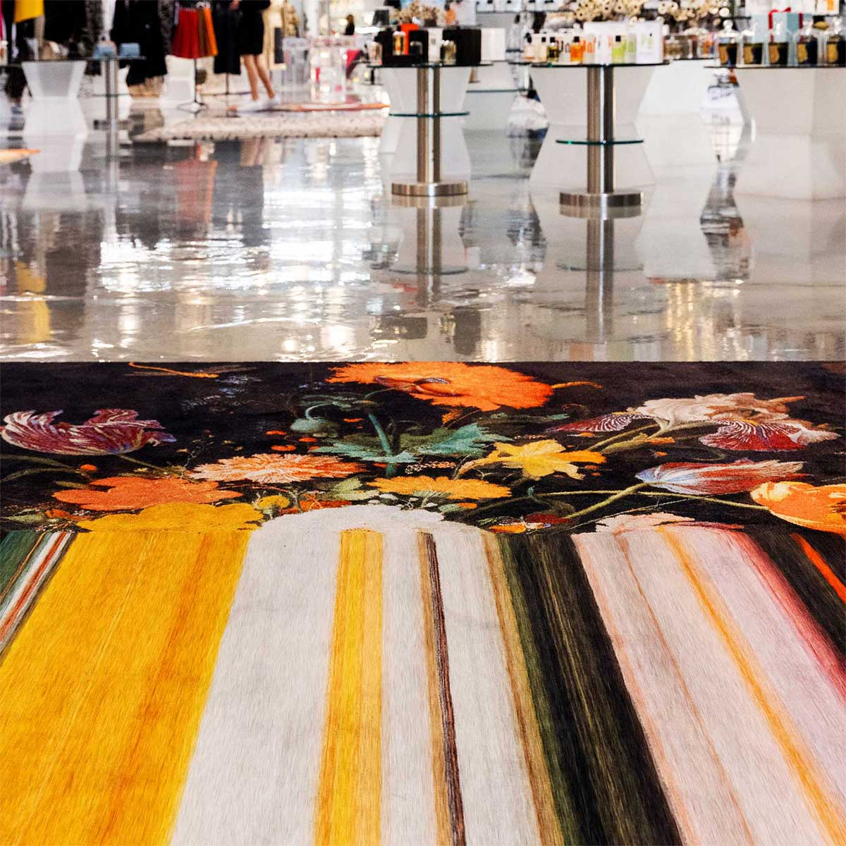 A unique design piece that combines traditional floral patterns with a modern, digital twist. The enchanting, colorful flowers seem to blend into lines, as if the image did not fully load when downloaded to a computer screen – a fascinating interplay of classic aesthetics and contemporary design. With its sophisticated colors and detailed patterns, the rug brings warmth and style to any room. The round shape and generous dimensions make it ideal as a central design element in the living room, bedroom or business area.