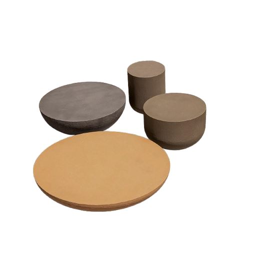 The collection is made up of side tables made of high-density polymer and finished with a clay layer. Matt stain-proof treatment. Available in four sizes and three colours: Ombra, Cassel or Siena.
