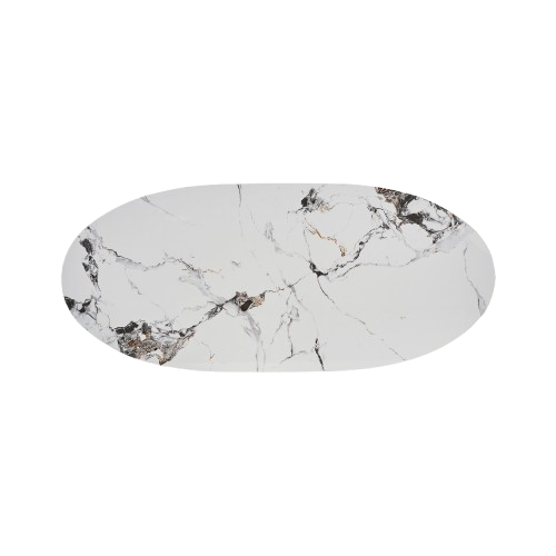 Artistic presence. This dining table in white and brown, with designer base and synthetic marble top, brings sophistication to any space.