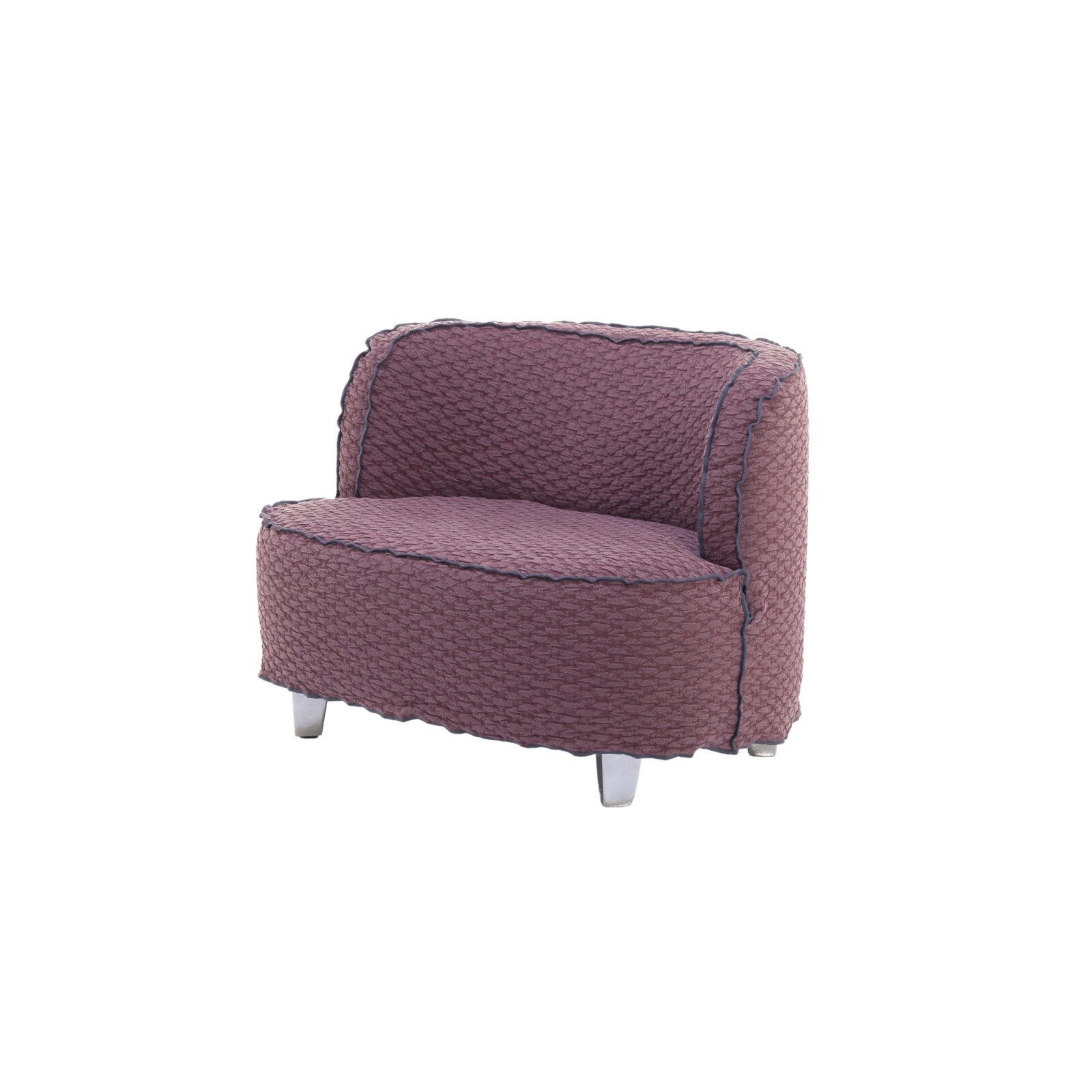 Soft lines and retro charm characterise the family of MORE armchairs, padded with polyurethane foam. Armchairs with an enveloping backrest and a wide seat, have a removable cover with a free bottom and sew/cut seam. The feet are made of polished cast aluminium, in natural varnished Canaletto walnut or beech lacquered in white, grey, ocean, dove-grey or black.