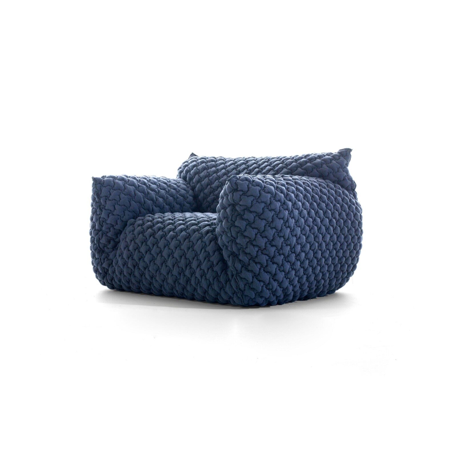 A family of armchairs with soft and attractive shapes, Nuvola’s aesthetic invites you to dive into it: the high armrests welcome a seat as deep as a hug, creating a real cocoon effect. Available in two sizes, they are padded with multi-density polyurethane foam covered with quilt padded with goose down and polyester fibre staples. The cover is removable with visible seams that draw the profile of the product and can be made with all the covers available in the catalogue in the name of maximum versatility.
