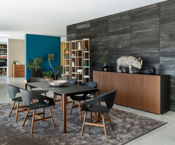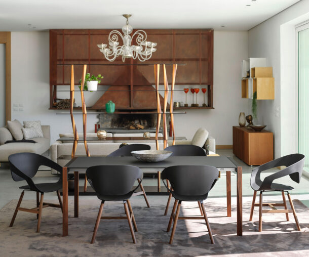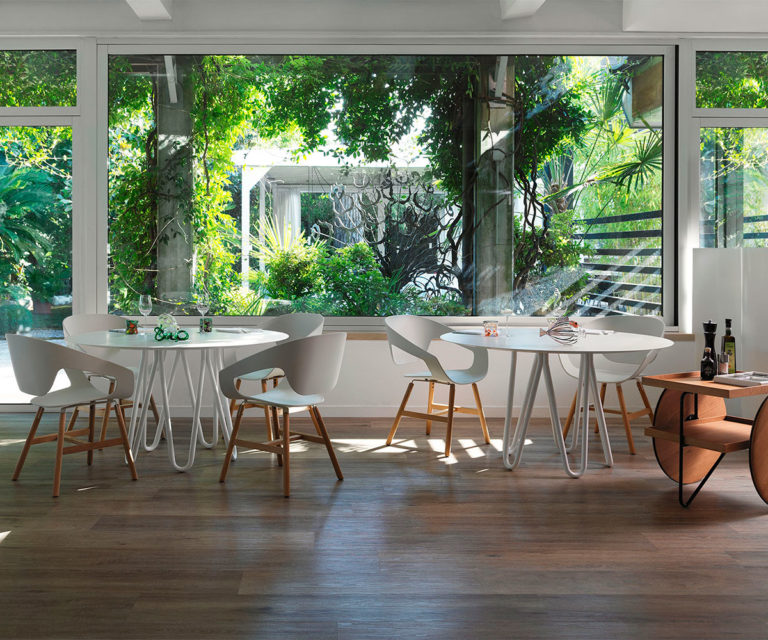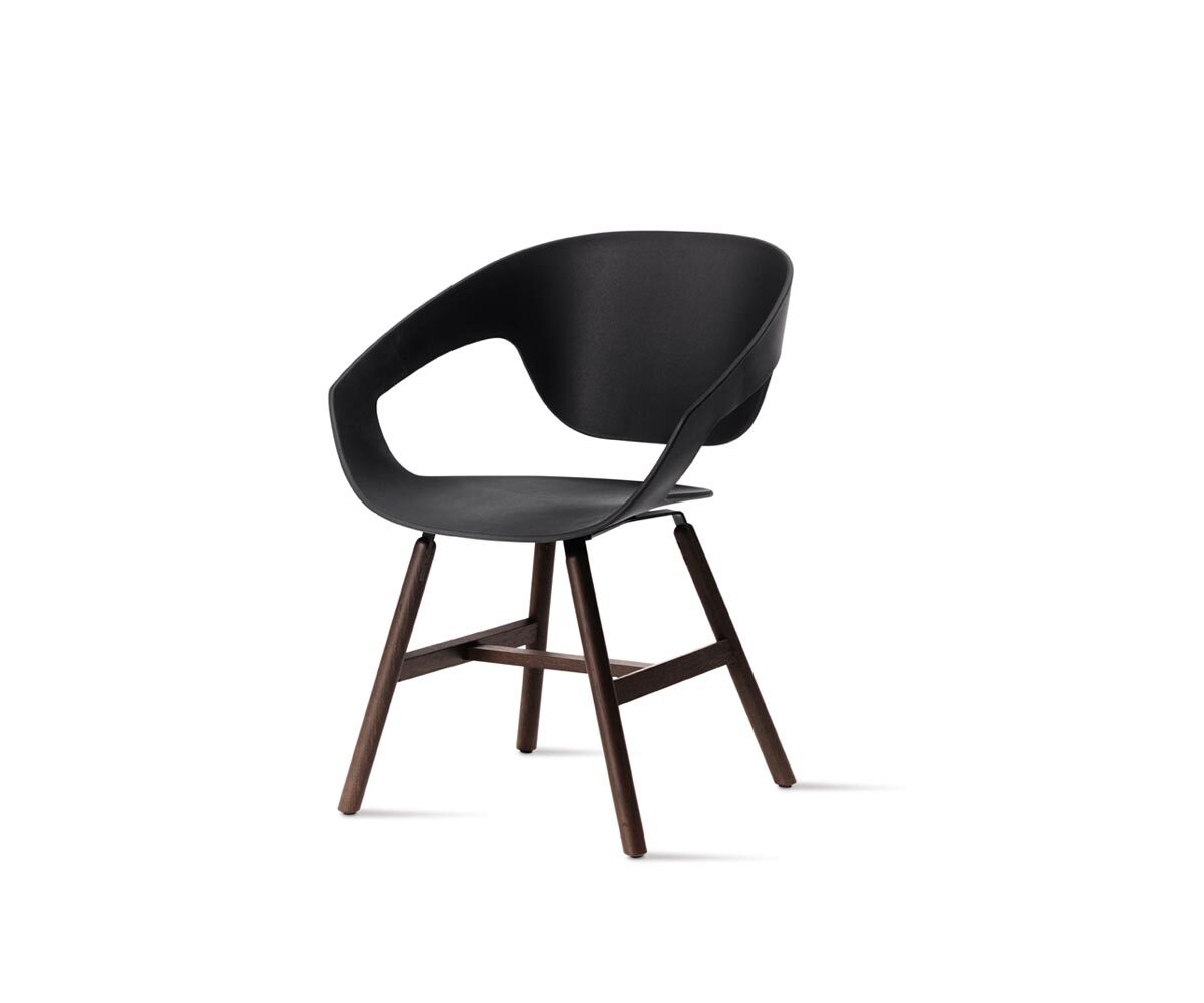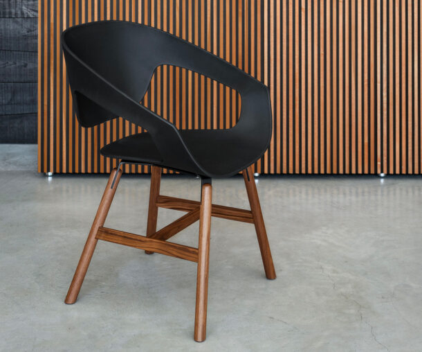 Vad is a collection of chairs available with different types of legs (wood, metal rod, or swivel trestle) and with a reinforced polypropylene body obtained by injection moulding. The shell can be upholstered in hard leather or padded and upholstered in fabric, soft leather and eco-leather. In the Vad Wood version, the structure in natural oak or Canaletto walnut makes the seat more elegant and refined while maintaining the typical taste of the Scandinavian tradition.